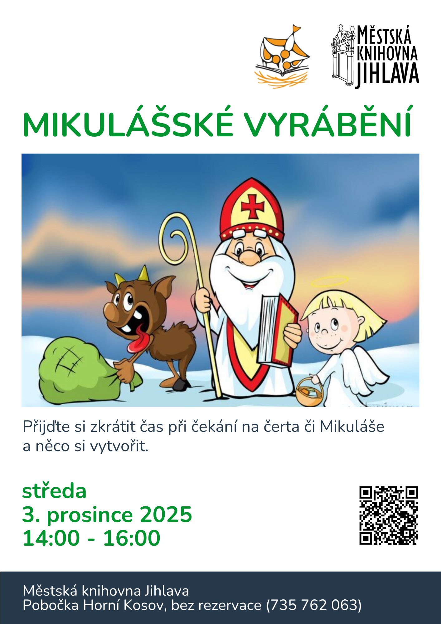 Blíží se čas Mikuláše a s ním i naše oblíbené Mikulášské vyrábění! Přijďte si s dětmi užít příjemné odpoledne plné tvoření, vůně lepidla, třpytek a dobré nálady.