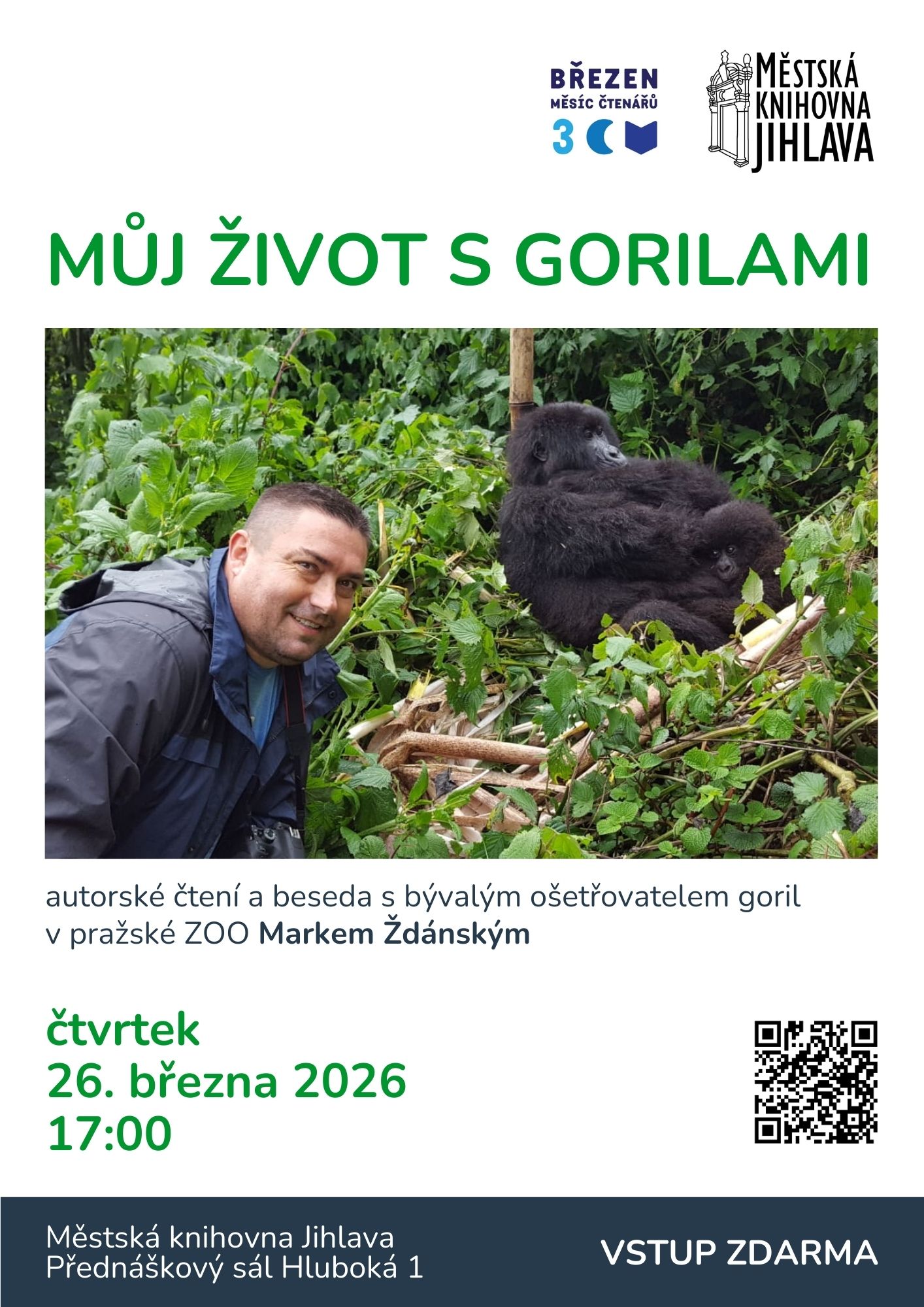 Srdečně vás zveme na čtvrté setkání s Markem Ždánským – bývalým ošetřovatelem goril v pražské ZOO, skvělým vypravěčem a tentokrát hlavně jako autorem jeho nové, v pořadí již čtvrté knihy, kterou se spoluautorkou Petrou Hátlovou napsal a vydal ke svému životnímu jubileu. V této knize Můj život s gorilami vzpomíná na svoje roky v ZOO i na časté cesty za gorilami ve volné přírodě a popisuje poutavou formou práci s těmito nádhernými tvory.