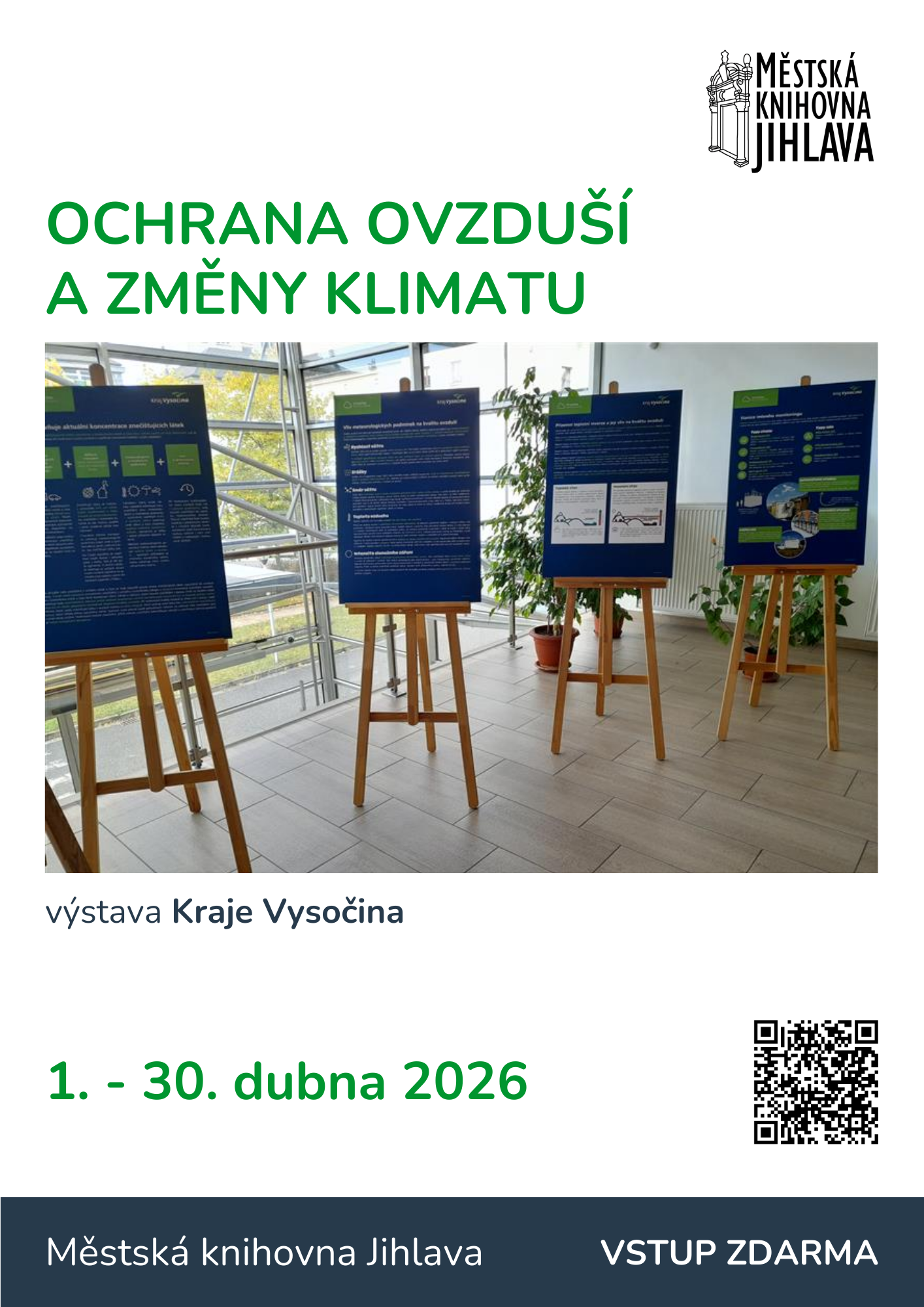 Zveme vás na výstavu, která srozumitelnou formou přibližuje aktuální environmentální témata. Prostřednictvím informačních panelů se návštěvníci dozvědí více o tom, jak vzniká znečištění ovzduší, jak souvisí s klimatickou změnou a jak může každý z nás přispět ke zlepšení stavu životního prostředí.