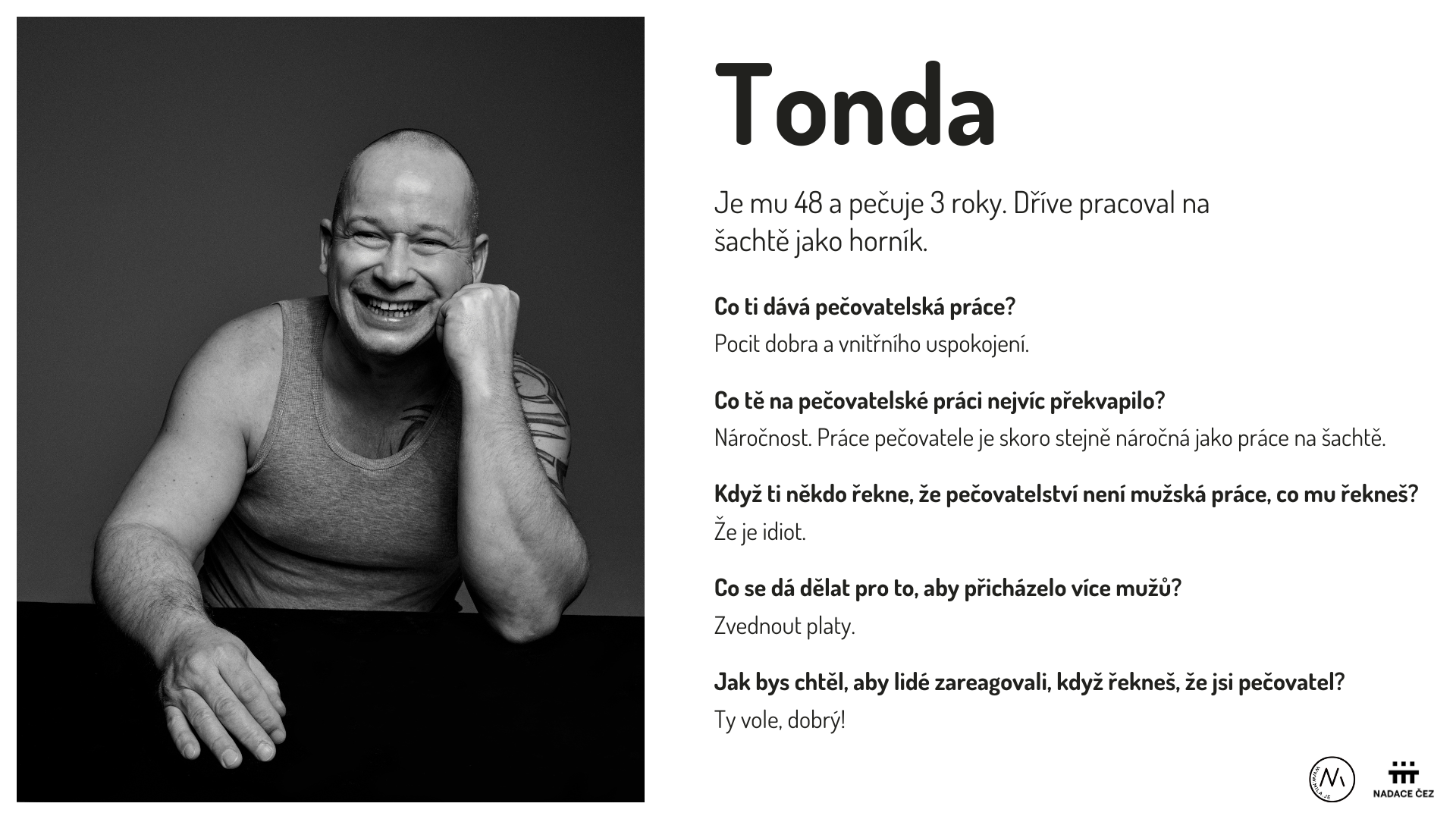 Každý portrét doprovází osobní rozhovor, který nabízí pohled do světa péče o seniory a připomíná, jak lidská, hluboká a obohacující tato profese je.