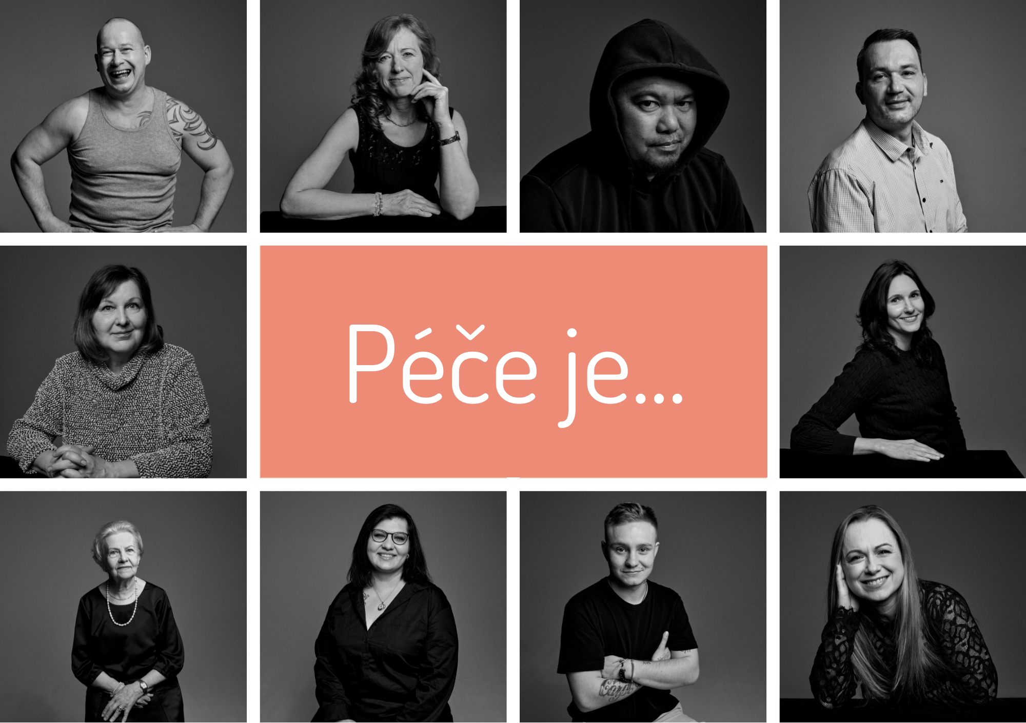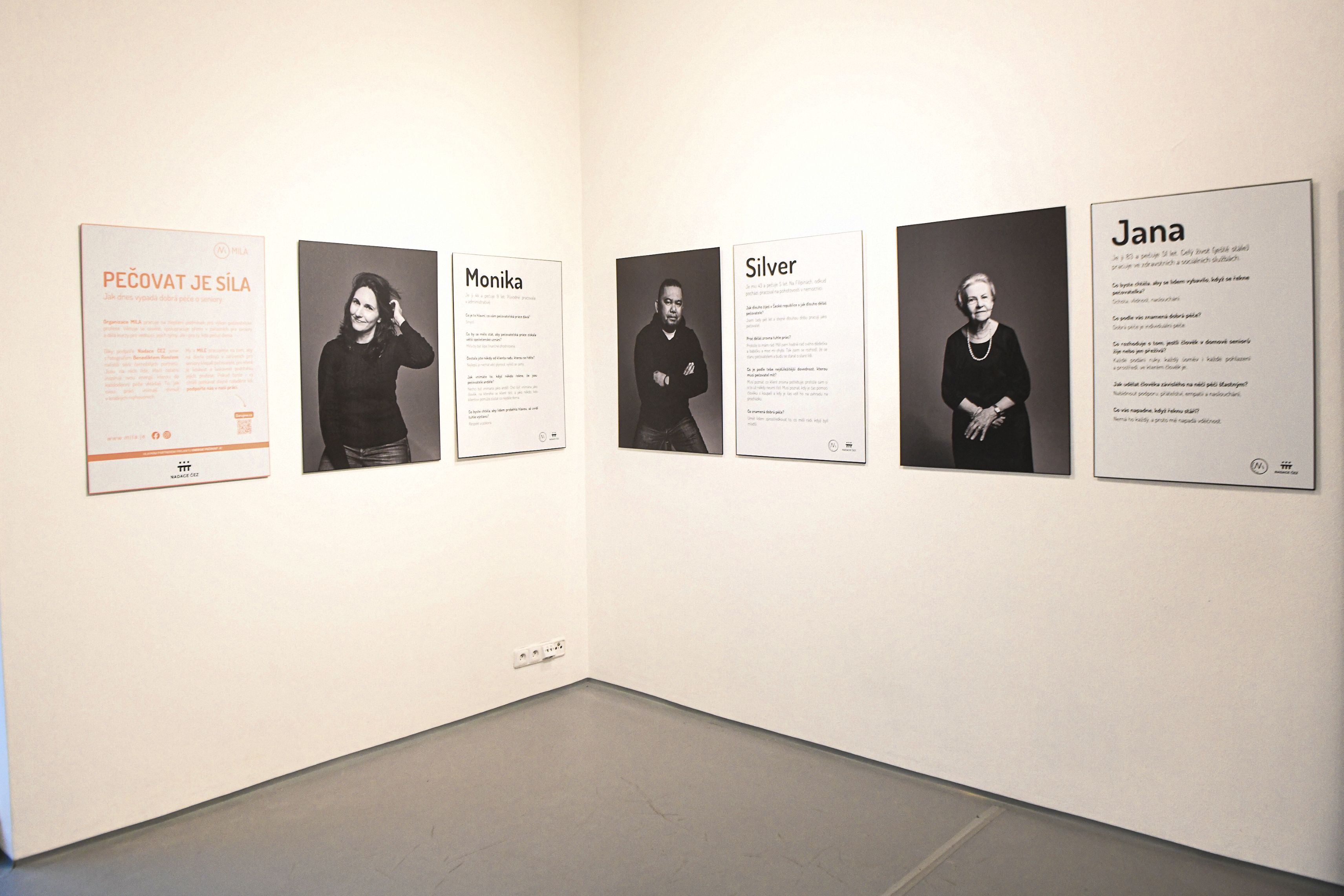Výstava Pečovat je síla představuje jedenáct černobílých portrétů profesionálních pečovatelek a pečovatelů – lidí, kteří svou každodenní prací a energií inspirují ostatní.