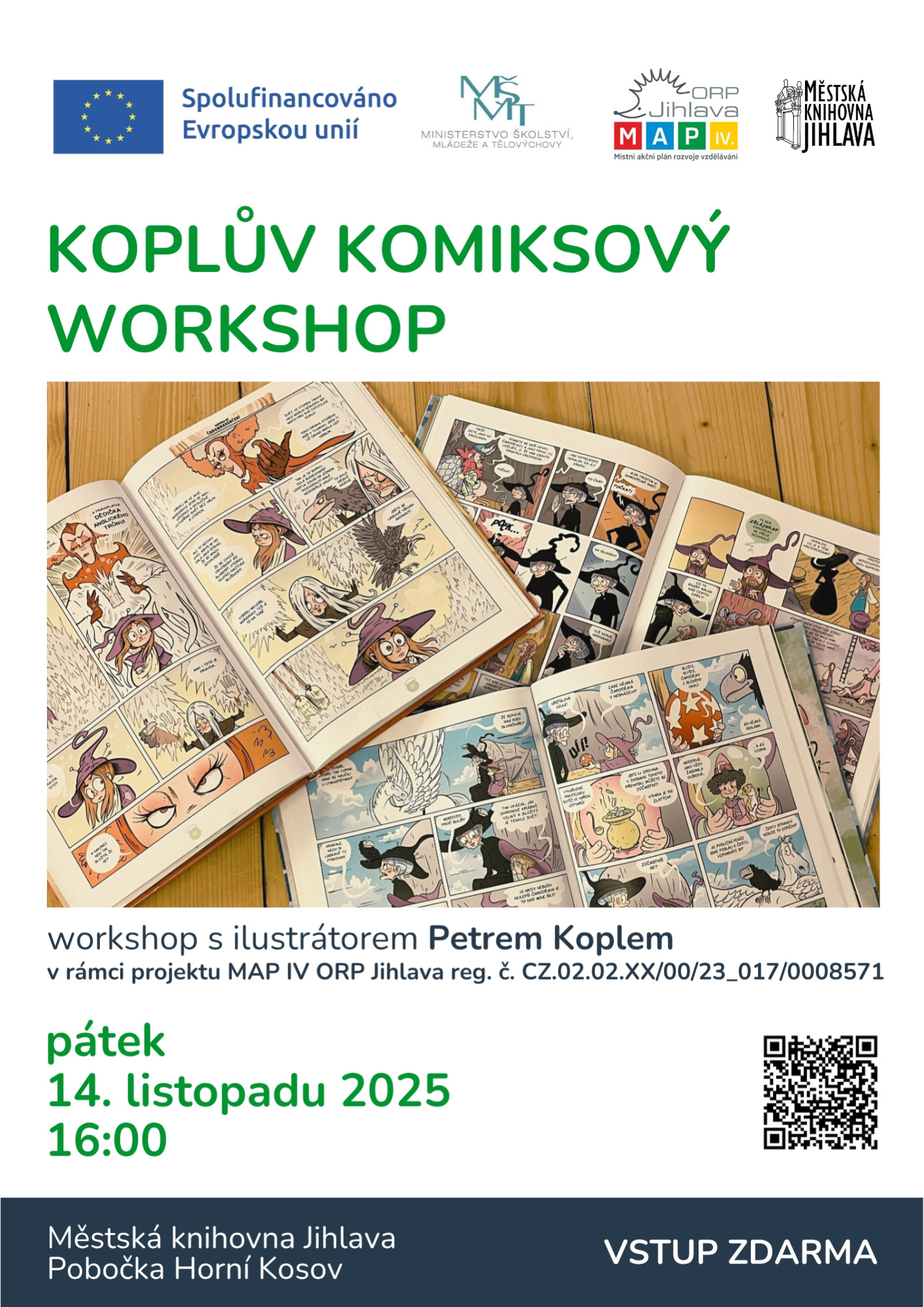 Workshop s ilustrátorem Petrem Koplem se koná v rámci projektu MAP IV ORP Jihlava reg. č. CZ.02.02.XX/00/23_017/0008571.