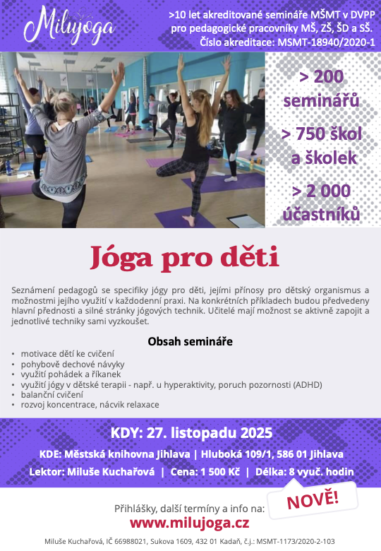 Jóga pro děti v praxi pedagoga - seminář s lektorkou Miluší Kuchařovou