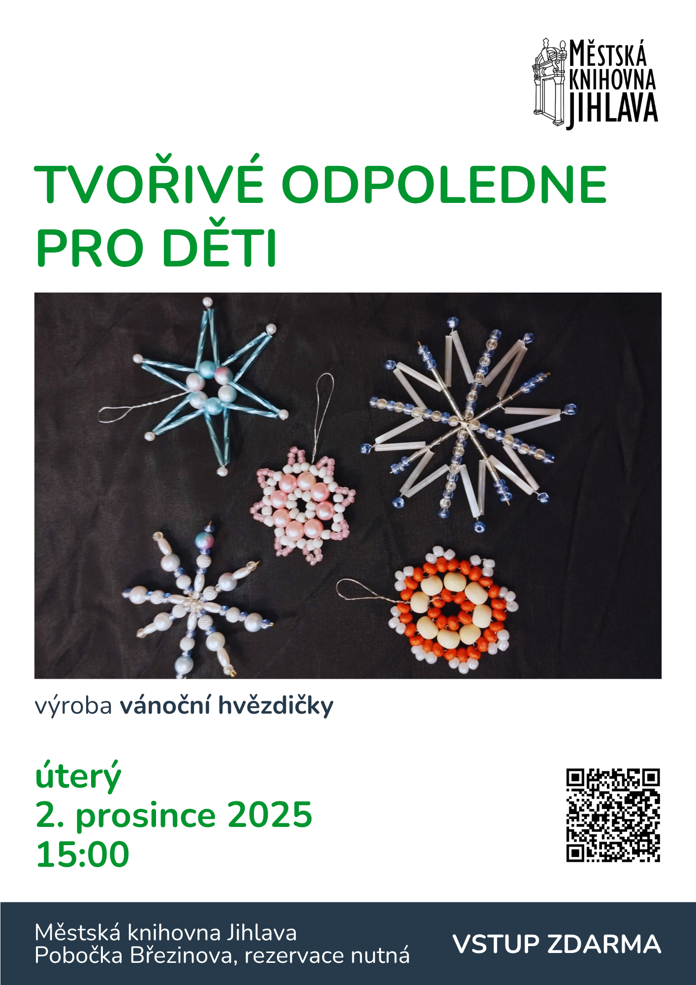 Zveme všechny malé i větší děti na tvořivé odpoledne plné vánoční atmosféry.