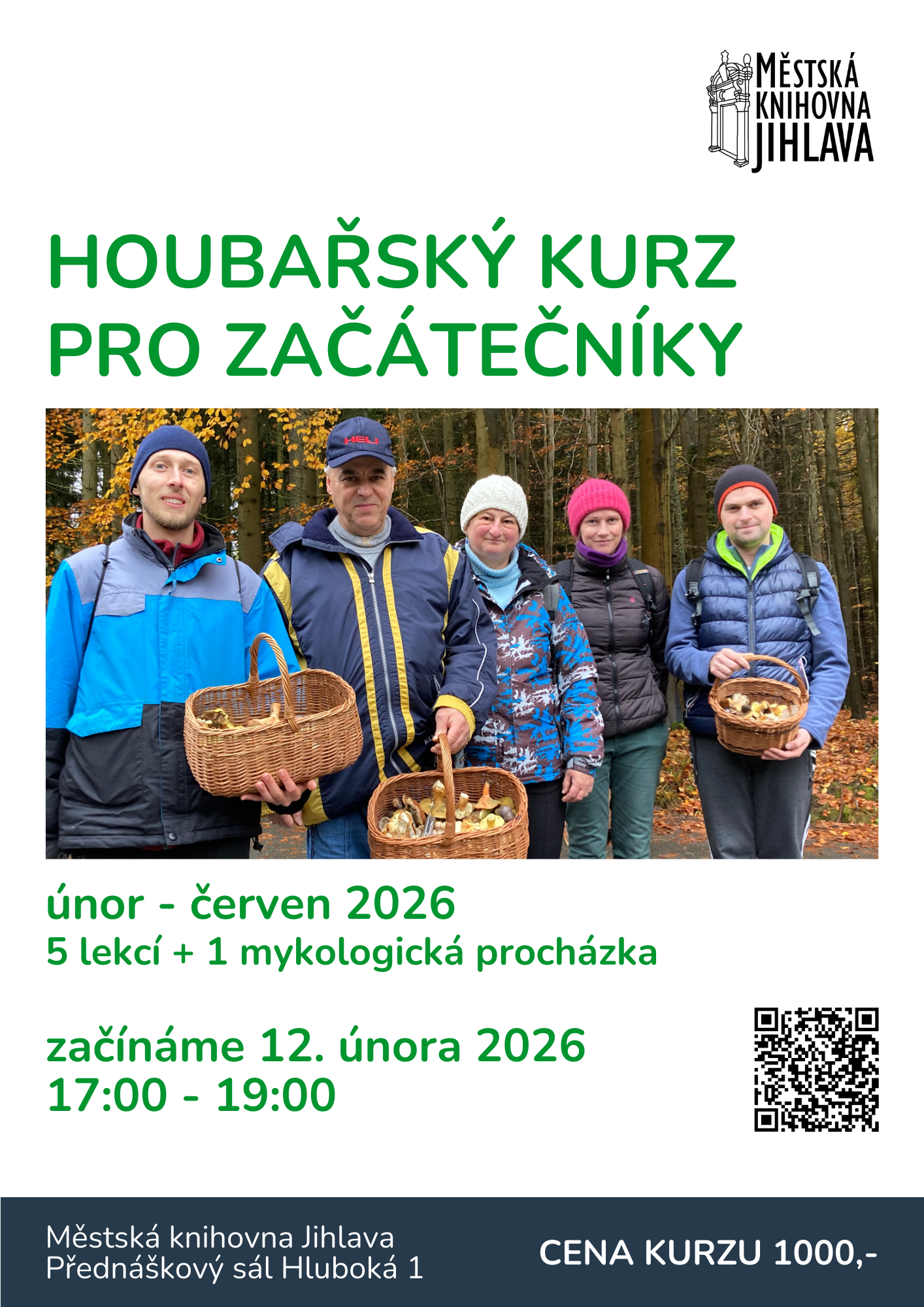 Zahájení: 12. únor 2026 (další lekce: 5. březen, 9. duben, 7. květen, 11. červen 2026 + mykologická procházka 13. června 2026)