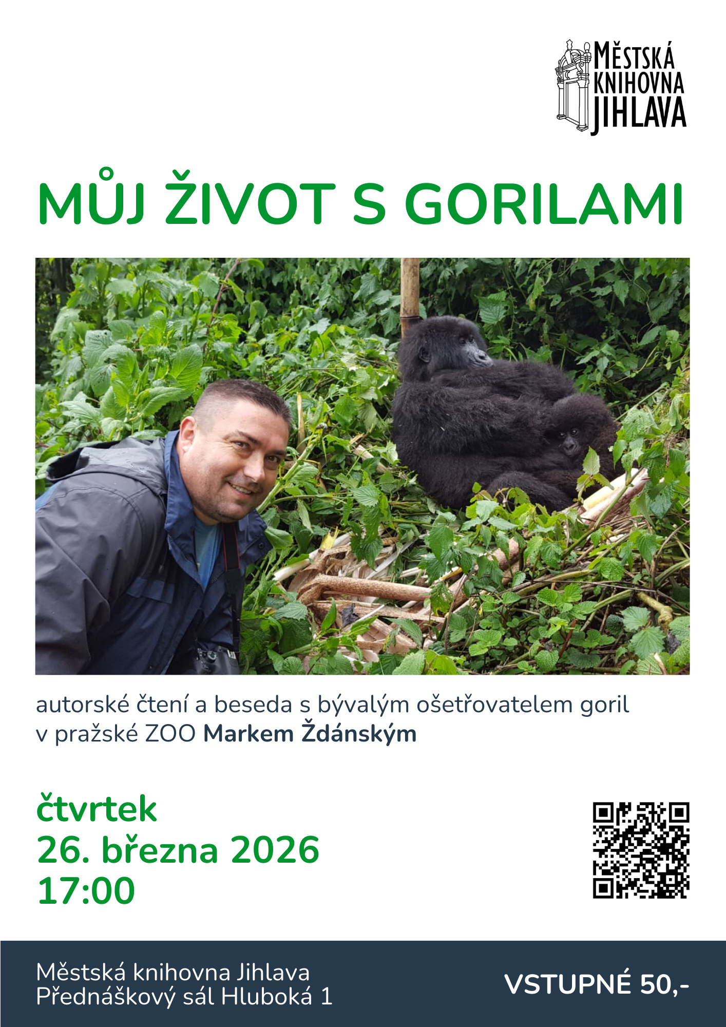 Srdečně vás zveme na čtvrté setkání s Markem Ždánským – bývalým ošetřovatelem goril v pražské ZOO, skvělým vypravěčem a tentokrát hlavně jako autorem jeho nové, v pořadí již čtvrté knihy, kterou napsal a vydal ke svému životnímu jubileu. V této knize Můj život s gorilami vzpomíná na svoje roky v ZOO i na časté cesty za gorilami ve volné přírodě a popisuje poutavou formou práci s těmito nádhernými tvory.