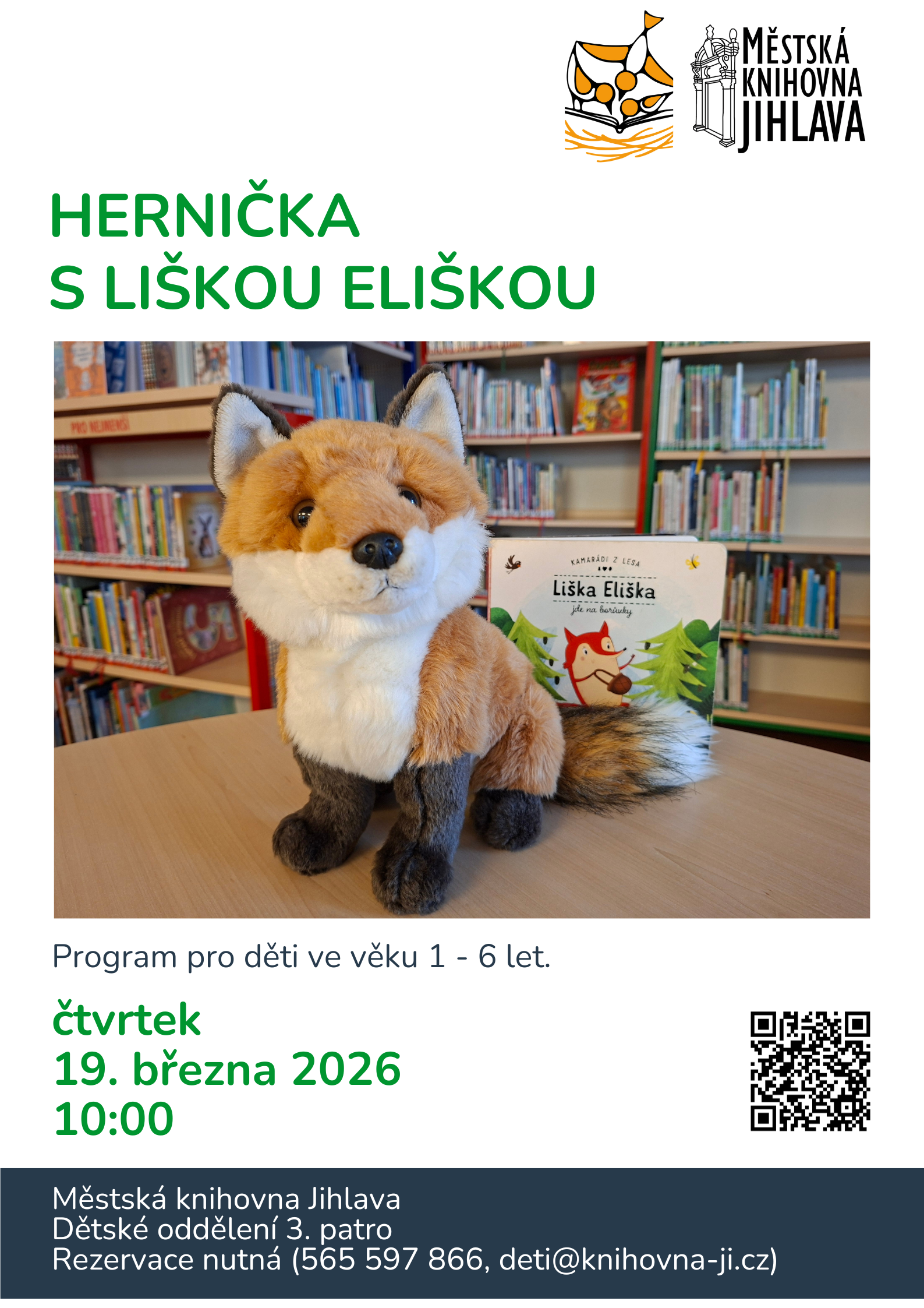 připravujeme pro vás další Herničku, tentokrát s kamarádkou liškou Eliškou. Budeme si číst, hrát a vyrábět.