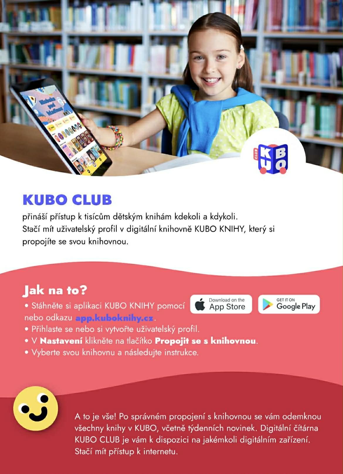 KUBO je digitální knihovna pro děti plná pohádek, příběhů, encyklopedií a dalších knih pro malé čtenáře. Je vhodná zejména pro děti od 2 do 14 let a přináší bezpečné a přehledné prostředí pro čtení v mobilu nebo tabletu.